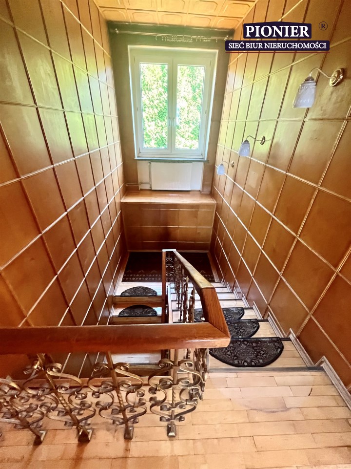 Na piętro prowadzą wygodne schody, klatka schodowa jest widna dzięki doświetleniu światłem dziennym pochodzącym z okna na półpiętrze.