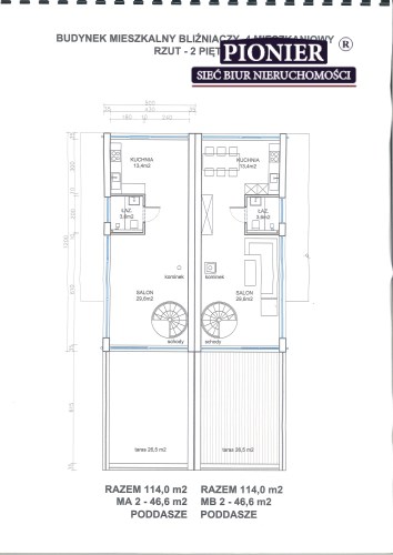 Oferowany Apartament jest o powierzchni użytkowej 114 mkw (dwupoziomowy 1 i 2 piętro) składa się z dużego salonu z aneksem kuchennym z wyjściem na duży widokowy taras o pow. 26.5 mkw, 2 sypialni, garderoby, pomieszczenia gospodarczego, 2 łazienek i balkonu.
