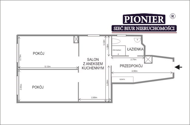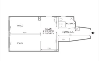 Mieszkanie składa się z 2 pokoi, salonu/jadalni z aneksem kuchennym, przedpokoju oraz łazienki z WC.