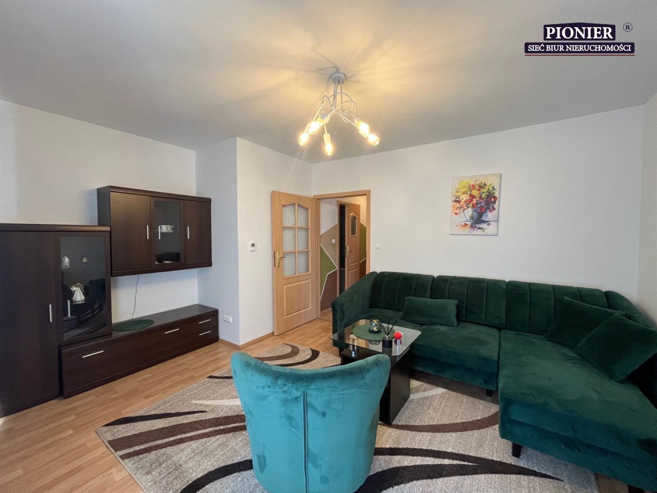 - Słoneczny salon z wyjściem na balkon.